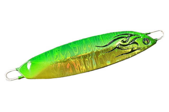 ■商品名 DORAKEN SLIM200 ■商品説明 ハンドメイドメタルジグ サイズ:約140mm ウェイト:約200g カラー:ミドキン ■特徴 ・センターバランスで安定した水中フォールアクションを再現しやすく設計 ・ロッド操作により長めにフォールを取ることも可能 ・ただ巻きではフラフラと弱ったベイトを演出 ・従来のDORAKENシリーズに比べ操作性が軽くなりレスポンスが向上 ■注意事項 細心の注意を払って作製していますが、ハンドメイドの特性上、ホロシート、長さや重量の誤差、色合いの違いなどの可能性があります。 ハンドメイドならではの風合いとしてお楽しみいただけると幸いです。 ■発送方法 ・ネコポス 全国送料一律500円(5000円以上のご注文で国内送料無料) ※海外対応は行っておりません。